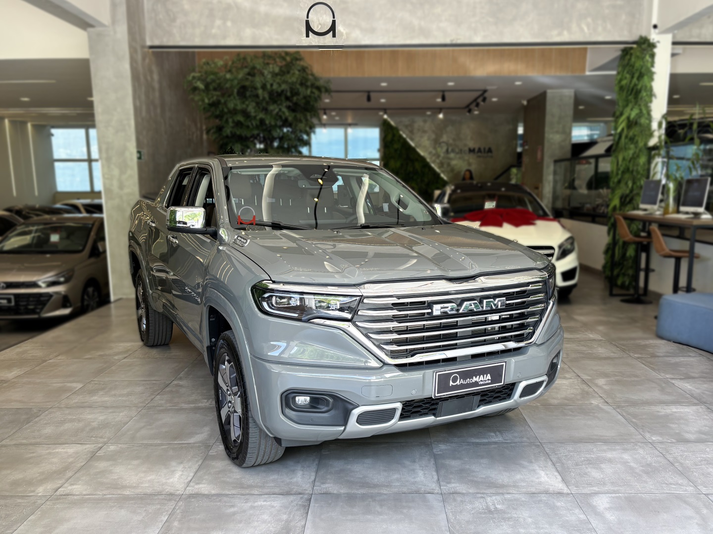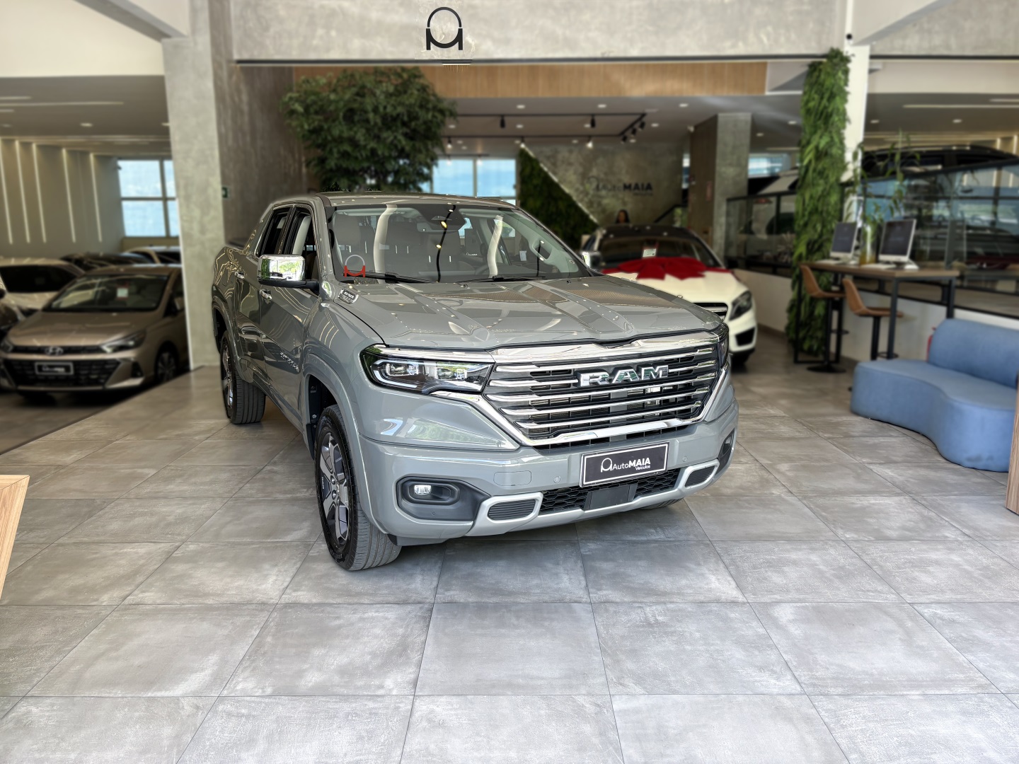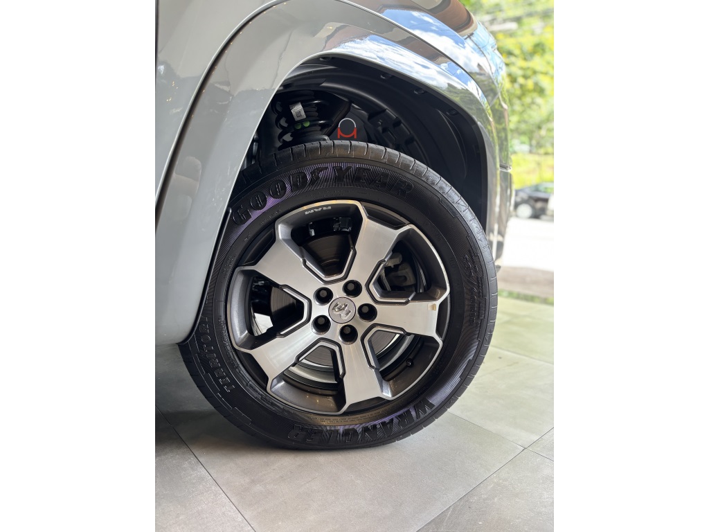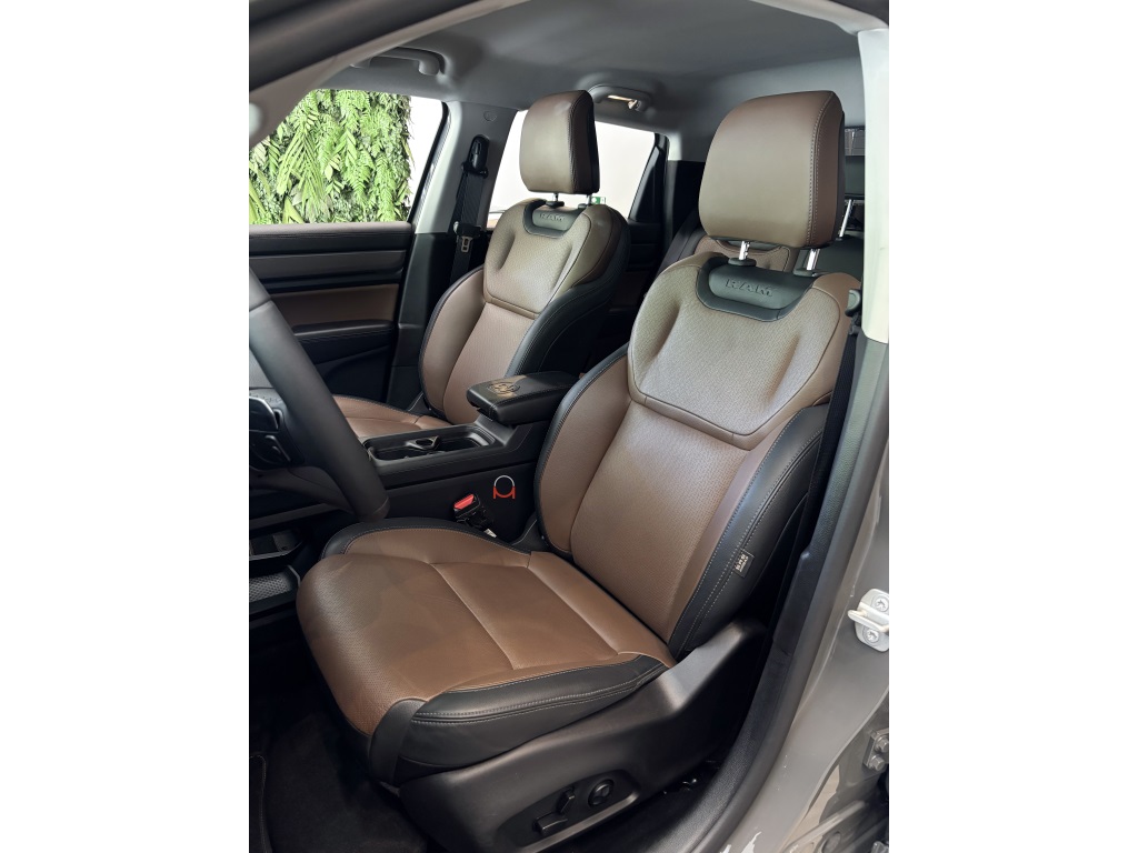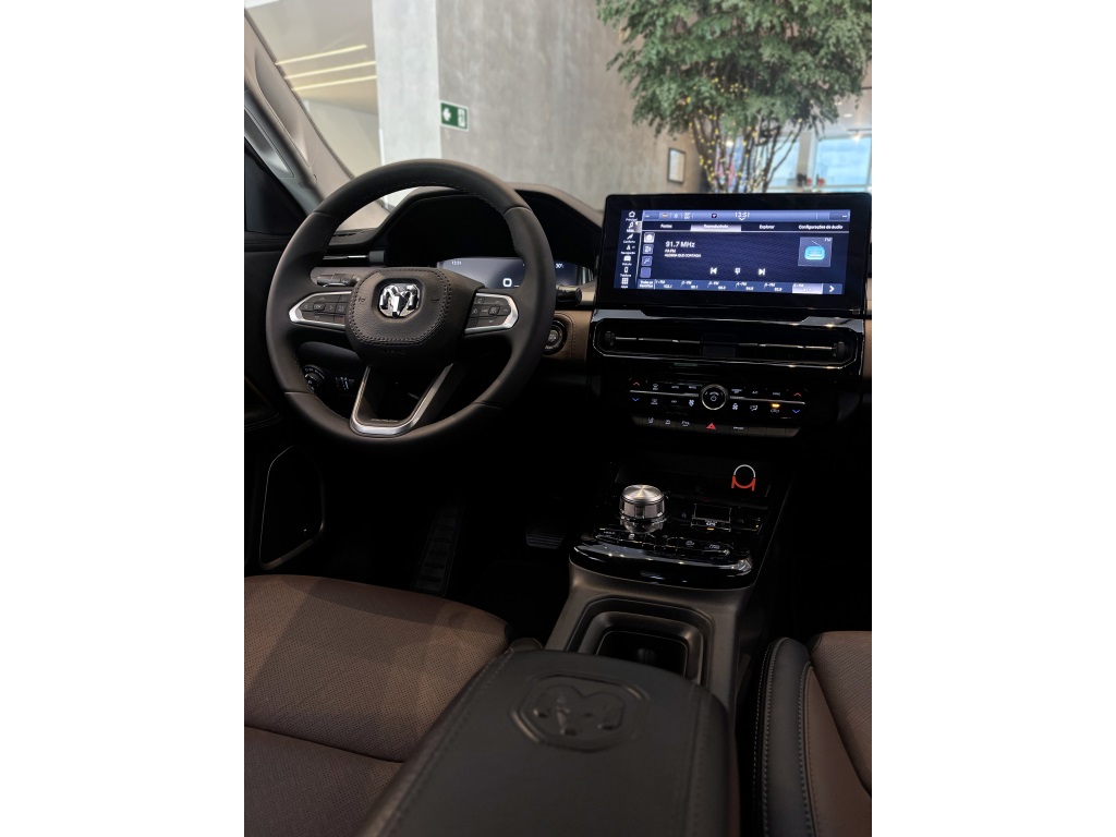 A Ram Rampage Laramie 4x4 2.0 AT Gasolina 2024 na elegante cor Cinza Sting com bancos em couro caramelo é uma picape robusta e sofisticada, nossa unidade tem histórico de revisões em autorizada e está muito conservada. Com motor 2.0 turbo, câmbio automático de 9 marchas e tração integral, entrega desempenho versátil e seguro em qualquer estrada ou trilha. Oferece amplo pacote de tecnologia e conforto, incluindo assistências ao condutor, multimídia com GPS, som premium e conectividade via aplicativo. Perfeita para quem busca potência, estilo e confiança em um veículo praticamente novo.