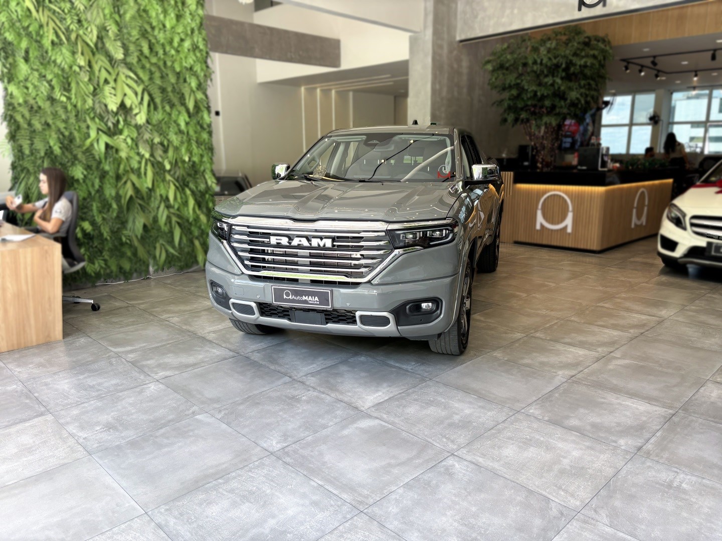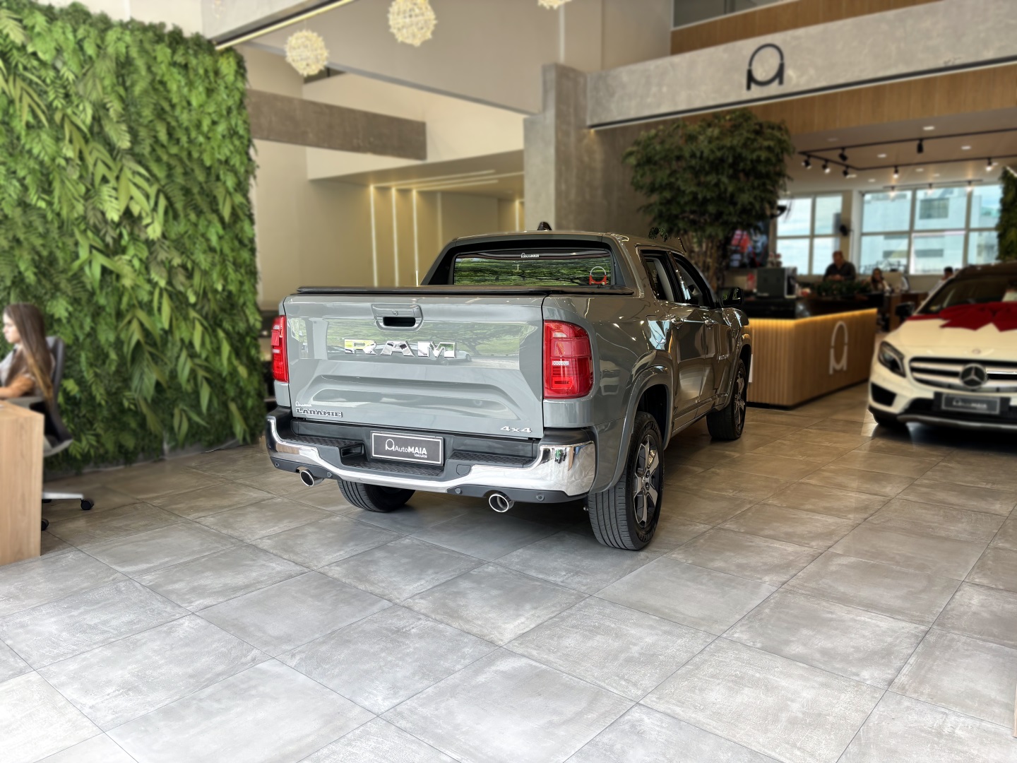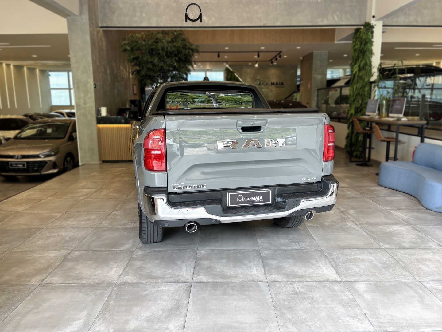 A Ram Rampage Laramie 4x4 2.0 AT Gasolina 2024 na elegante cor Cinza Sting com bancos em couro caramelo é uma picape robusta e sofisticada, nossa unidade tem histórico de revisões em autorizada e está muito conservada. Com motor 2.0 turbo, câmbio automático de 9 marchas e tração integral, entrega desempenho versátil e seguro em qualquer estrada ou trilha. Oferece amplo pacote de tecnologia e conforto, incluindo assistências ao condutor, multimídia com GPS, som premium e conectividade via aplicativo. Perfeita para quem busca potência, estilo e confiança em um veículo praticamente novo.