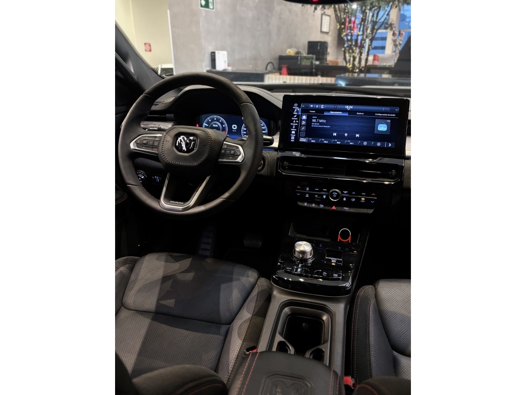 Picape esportiva de alto desempenho, com visual imponente e excelente nível de conforto e tecnologia. Veículo com apenas 22.000 km, sem retoques de pintura, revisado em autorizada e ainda na garantia de fábrica. Versão R/T Hurricane com proposta mais esportiva, entregando condução forte e muito prazer ao dirigir. Conta com central multimídia, painel digital, sistema de som premium, bancos em couro com ajustes elétricos, ar digital dual zone, chave presencial, piloto automático adaptativo, assistentes de condução, faróis em LED, rodas de liga leve exclusivas e ótimo espaço interno, em estado de conservação impecável.